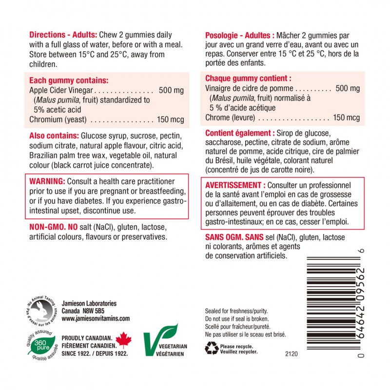 پاستیل طعم دار سرکه سیب و کروم Jamieson Apple Cider Vinegar & Chromium (60 عددی)