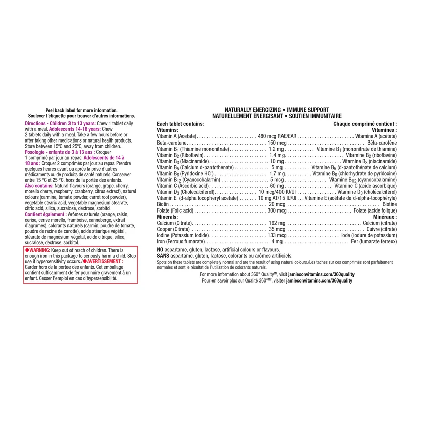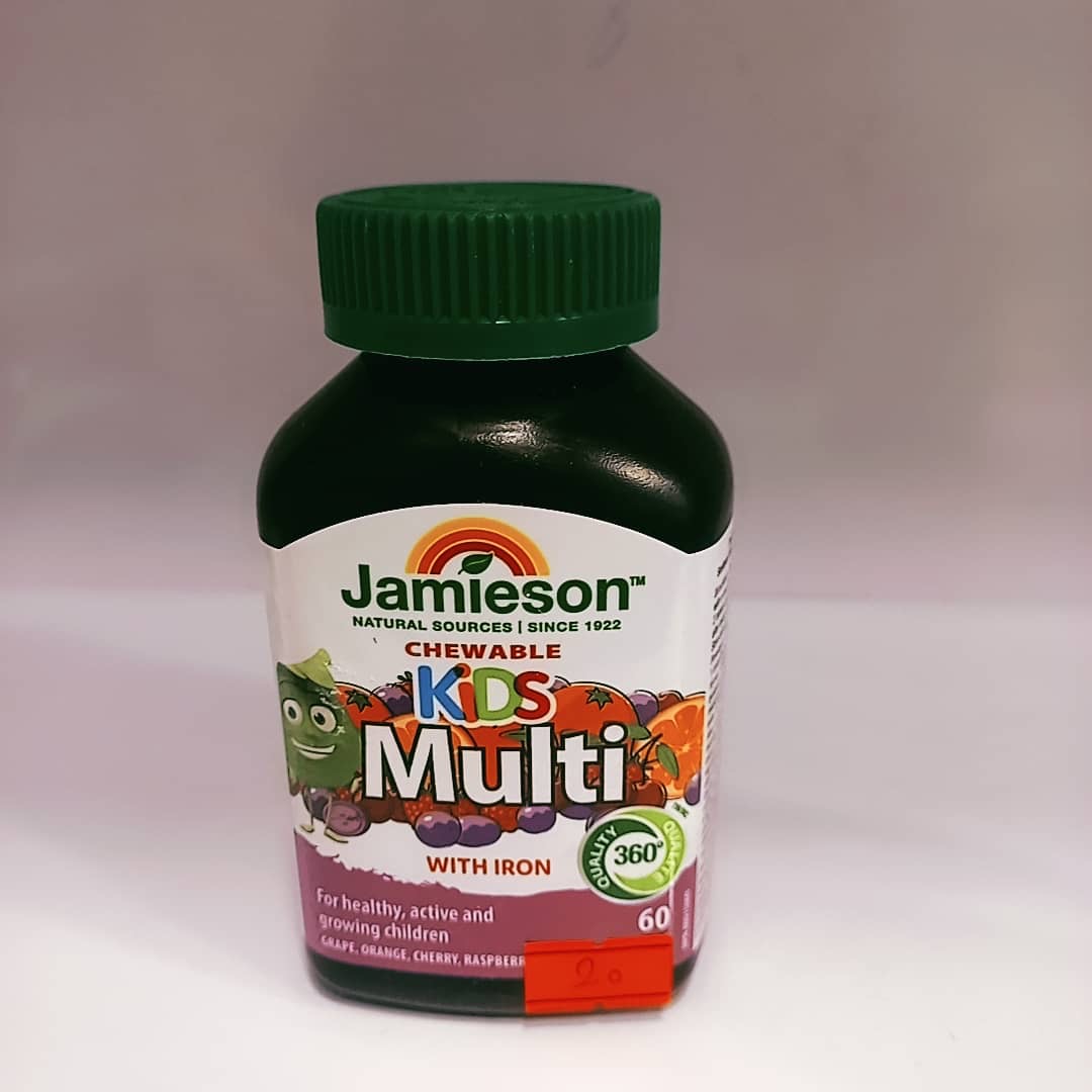 مولتی ویتامین کودکان جمیسون 60 عدد Jamieson Kids Chewable Multi با تامین ویتامینها و مواد معدنی ضروری در قالبی خوشمزه و جذاب، به رشد و سلامت کلی کودکان کمک میکند و مصرف آن را برای کودکان آسان و لذتبخش میسازد.