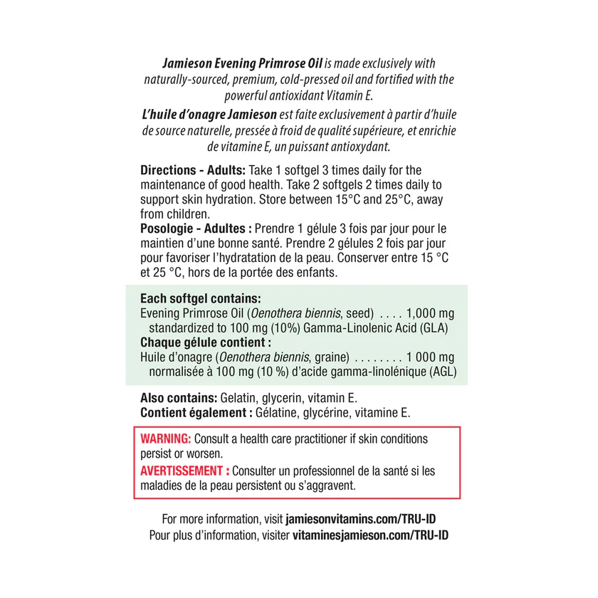 روغن گل مغربی جیمسون 1000 میلی گرم 85 عدد Jamieson Evening Primrose oil به سلامت پوست شما کمک می کند. روغن گل مغربی دارای سابقه طولانی استفاده در آمریکای شمالی است. این روغن سرشار از اسیدهای چرب ضروری است که توسط بدن ساخته نمی شود و باید از طریق منابع جایگزین به دست آید. تعادل سالم اسیدهای چرب ضروری برای رشد طبیعی مغز و بدن انسان ضروری است. روغن گل مغربی جیمیسون با استفاده از خالص ترین و مرغوب ترین روغن کمپرس سرد ساخته شده است و با آنتی اکسیدان قوی ویتامین E که برای حفظ سلامتی ضروری است، غنی سازی شده است. علاوه بر سلامت کلی، روغن گل مغربی جیمیسون همچنین می تواند به حفظ پوست سالم و هیدراته، بهبود خاصیت ارتجاعی پوست، کاهش التهاب ناشی از آکنه و تسکین علائم مرتبط با اگزما کمک کند.