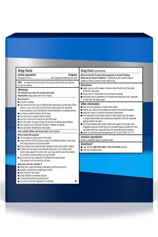 مینوکسیدیل 5٪ دو برابر نوع 2٪ موثر است، اما حاوی پروپیلن گلیکول است که میتواند باعث تحریک پوست سر شود و با ایجاد چسبندگی در مو باعث دشواری شانه زدن موها شود. در این موارد باید از محلول 5٪ در هنگام خواب و از محلول 2% (که دارای پایه الکلی است و کمتر چسبنده است) صبح استفاده کرد. هنگام استفاده از ماینوکسیدیل، ممکن است 6-3 ماه طول بکشد تا اثر دارو مشاهده شود.