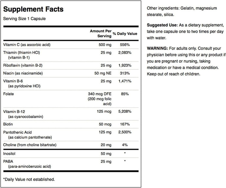 Swanson Super Stress B-Complex یک فرمولاسیون قدرتمند حاوی ویتامینهای گروه B به همراه ویتامین C است که به کاهش استرس، افزایش انرژی و حمایت از سیستم عصبی کمک میکند.