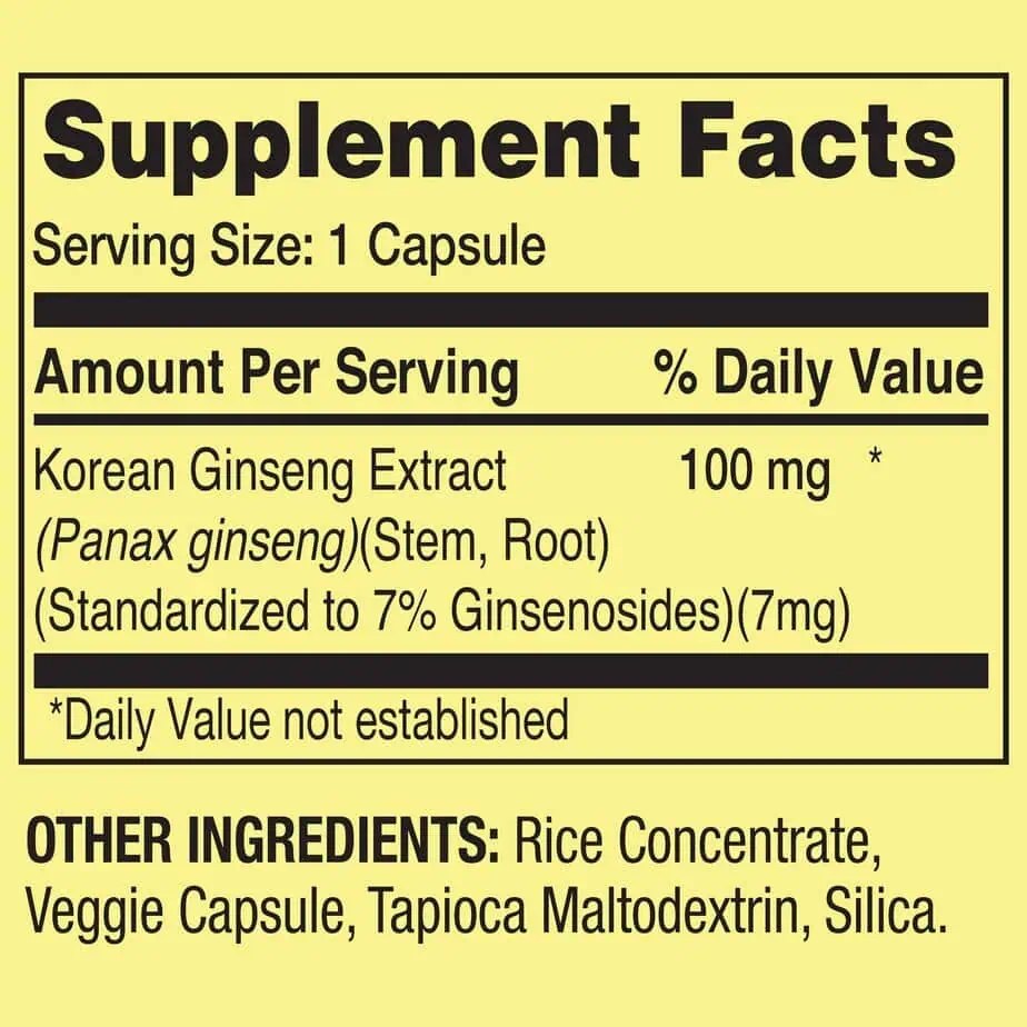 مشخصات محصول Spring Valley Korean Panax Ginseng, 100 mg