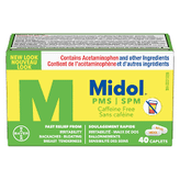 Midol® PMS بدون کافئین باعث تسکین سریع چند علامتی از علائم قبل از قاعدگی مانند تحریک پذیری، نفخ، حساسیت سینه ها، گرفتگی عضلات، کمردرد، سردرد، درد عضلانی، تنش و افزایش موقت وزن آب می شود.