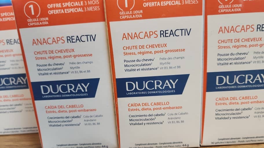 Ducray Anacaps Reactiv for Hair Loss x90 یک مکمل غذایی است که ریزش موی حاد یا فصلی را هدف قرار می دهد. این مکمل با فرمول منحصر به فرد، از ساختار و انعطاف پذیری مو و ناخن پشتیبانی می کند و همچنین رشد مو را تقویت می کند که به کاهش ریزش مو کمک می کند. این محصول با عصاره دم اسب به سلامت و رشد مو کمک می کند، در حالی که عصاره بلوبری میکروسیرکولاسیون روی پوست سر را بهبود می بخشد. بیوتین تولید کراتین را افزایش می دهد و به رشد سالم مو و ناخن کمک می کند. این محصول همراه با سیستئین و متیونین، استحکام و استحکام را برای کراتین، یکی از فراوان ترین پروتئین های مو، فراهم می کند. این به تقویت فیبر مو و در نتیجه کاهش ریزش مو کمک می کند. همچنین ویتامین B6 سنتز سیستئین و اسیدهای آمینه را که برای سنتز کراتین مهم هستند، بهبود می بخشد.