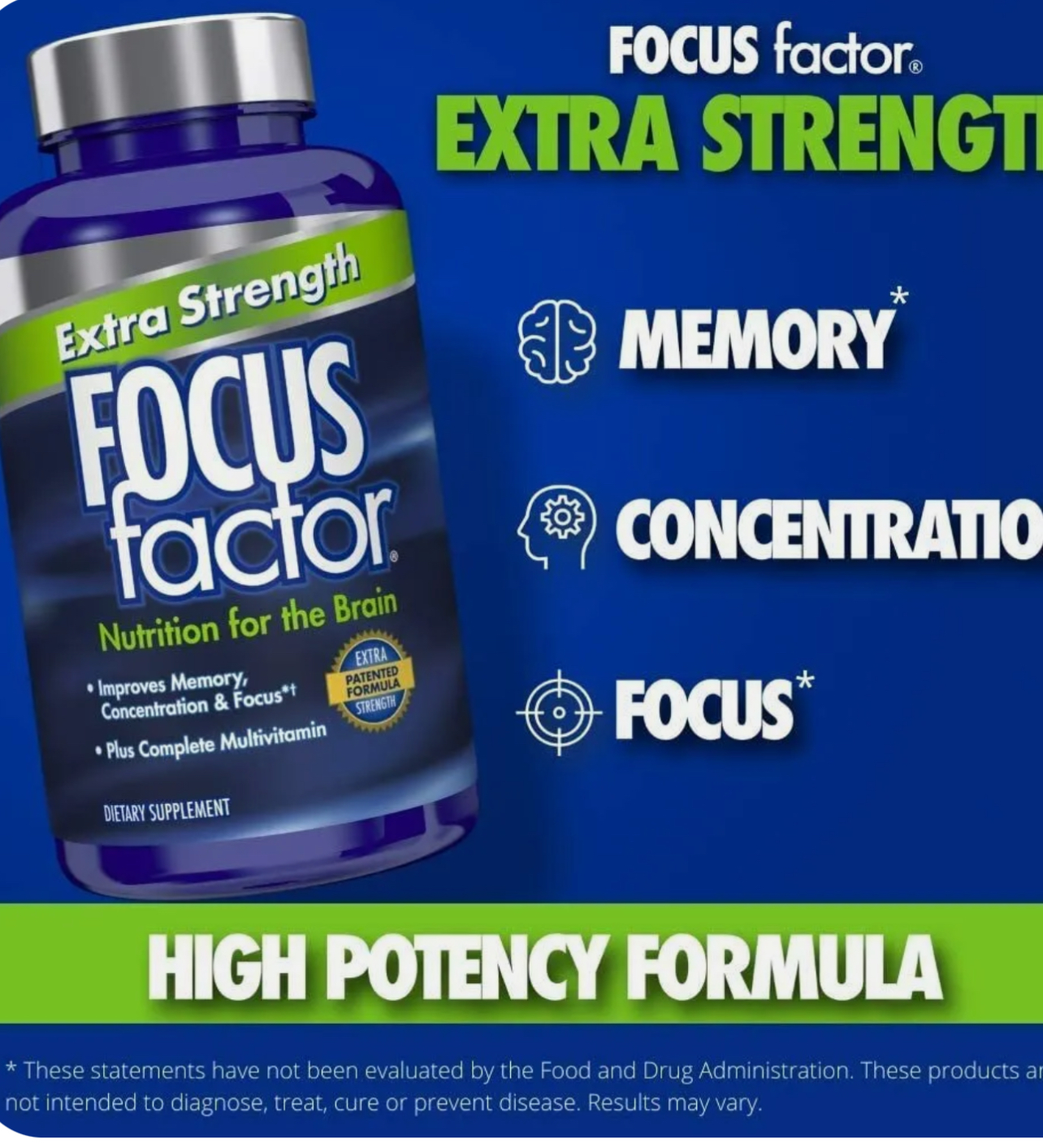 مغز شما مانند سایر قسمت های بدن شما به تغذیه مناسب نیاز دارد تا بهترین عملکرد خود را چه در محل کار، چه خانه و چه در حین حرکت انجام دهد. Focus Factor® حاوی ترکیبی قدرتمند از مواد مغذی عصبی بهعلاوه ویتامینها و مواد معدنی است که به تقویت حافظه و تمرکز شما کمک میکند.