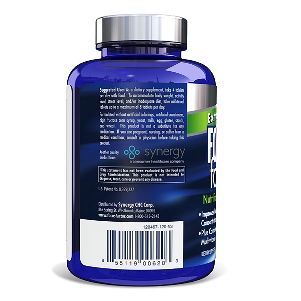 تقویت کننده مغز فوکوس فاکتور Focus Factor Nutrition for the Brain با مواد مغذی عصبی مهمی که به طور خاص از مغز شما پشتیبانی می کنند ساخته شده است و از عملکرد ذهنی و شناختی شما حمایت می کند. این محصول حاوی ویتامین ها و مواد معدنی است به طوری که نیاز به استفاده از مولتی ویتامین را از بین می برد. ویتامین های A، C، D، E، K، B1-3، B5-7، B9 و B12 برخی از ویتامین های استفاده شده در فوکوس فاکتور هستند. قرص فوکوس فاکتور همچنین حاوی ید است که به عملکرد طبیعی شناختی و عصبی کمک می کند. روی که به عملکرد شناختی طبیعی کمک می کند و اسید پانتوتنیک که به عملکرد ذهنی طبیعی کمک می کند.
