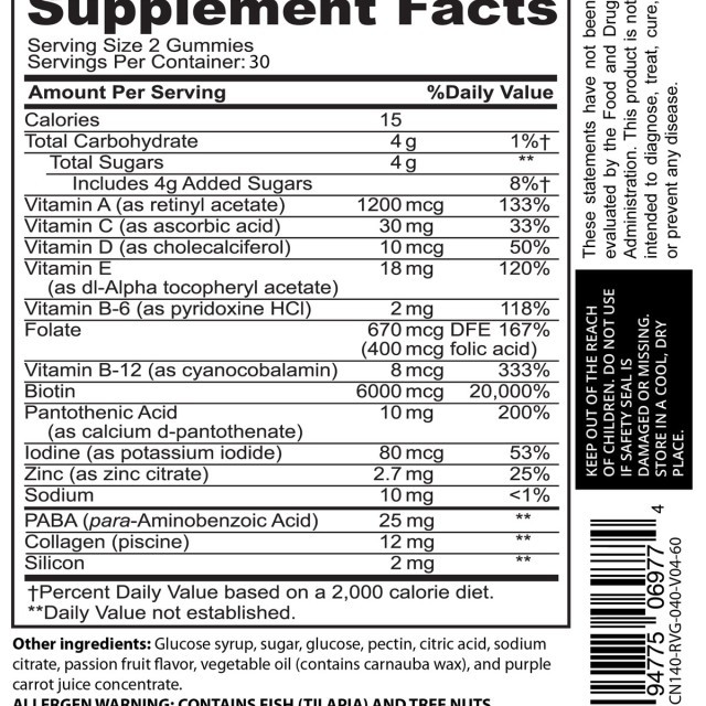 ساخت آمریکا - افزایش درخشش موها جلوگیری از ریزش مو تقویت ضخامت مو افزایش درخشش پوست درمان لک، کک و مک کاهش چین و چروک تقویت استحکام ناخنهای شکننده بدون مواد مصنوعی و گلوتن دارای گواهی تاییدیه FDA،NSF, GMP مناسب زنان و مردان