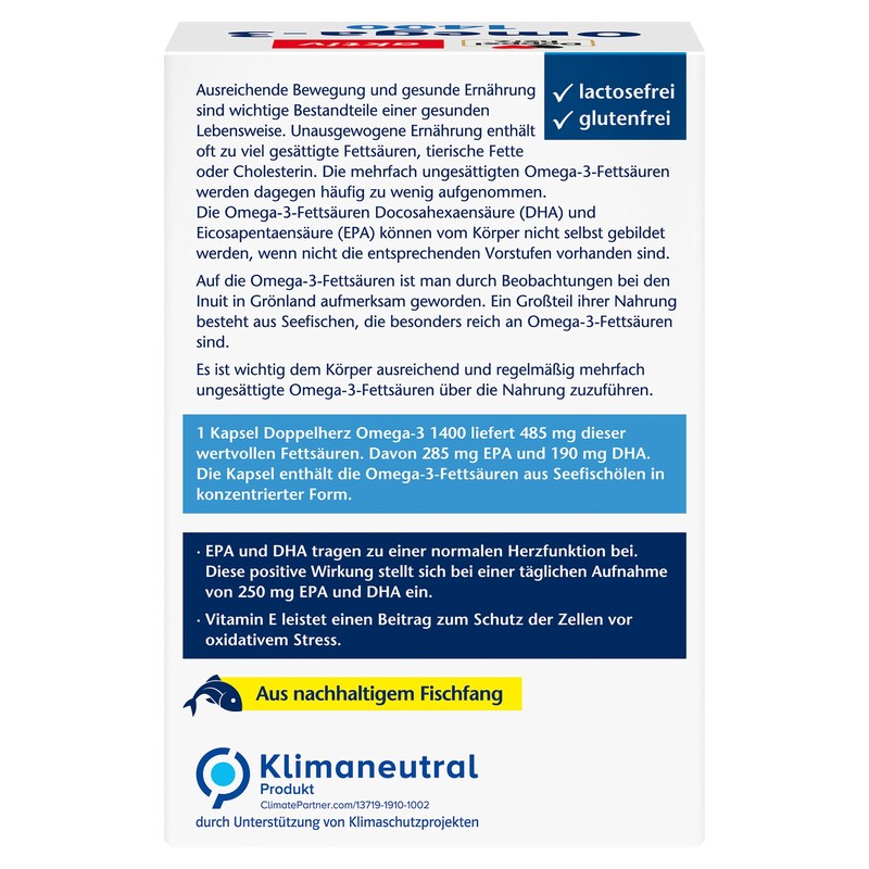 محتویات جعبه: 1 بسته 90 کپسول، کنسانتره امگا 3 قلب دوگانه، مکمل غذایی با دوز بالا با محتوای بالای امگا 3، حاوی ویتامین E، بدون گلوتن و بدون لاکتوز.