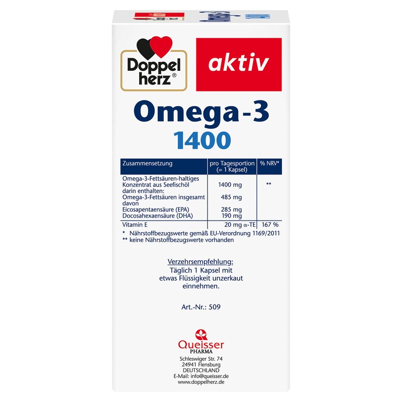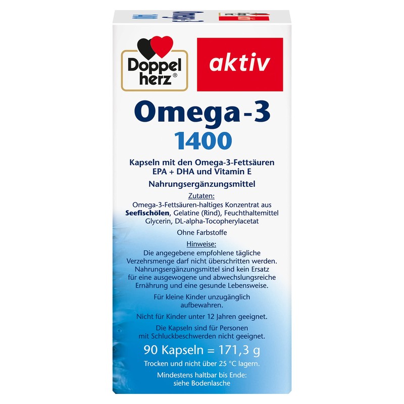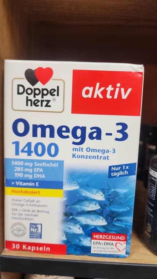 مکمل غذایی با دوز بالا Doppelherz حاوی اسیدهای چرب امگا 3 با ارزش از 1400 میلی گرم روغن ماهی دریا به شکل غلیظ است.