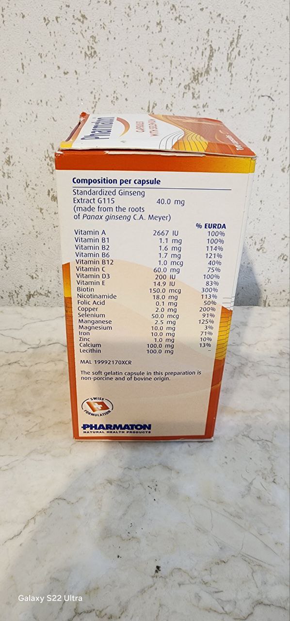 ترکیبی بی نظیر از مواد – کپسول فارماتون با سلنیوم ترکیبی منحصر به فرد از 13 ویتامین، 7 ماده معدنی، عصاره جینسینگ G115 و سلنیوم را فراهم می کند. این ترکیب از مواد برای ارتقای متابولیسم انرژی بهینه و عملکرد سیستم ایمنی طراحی شده است.