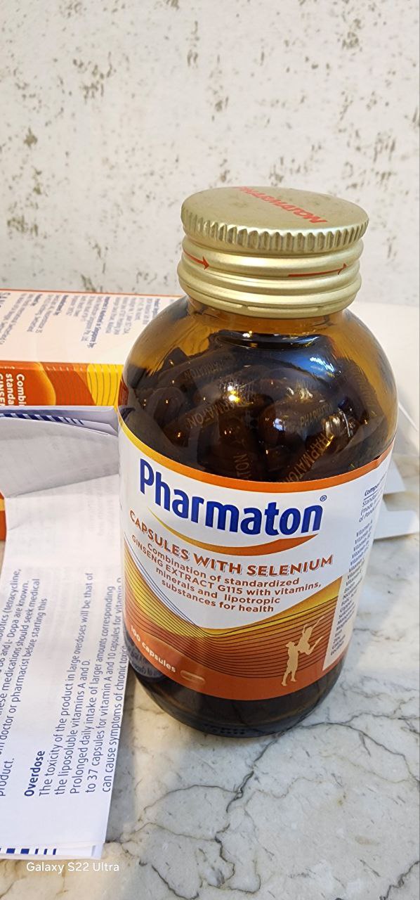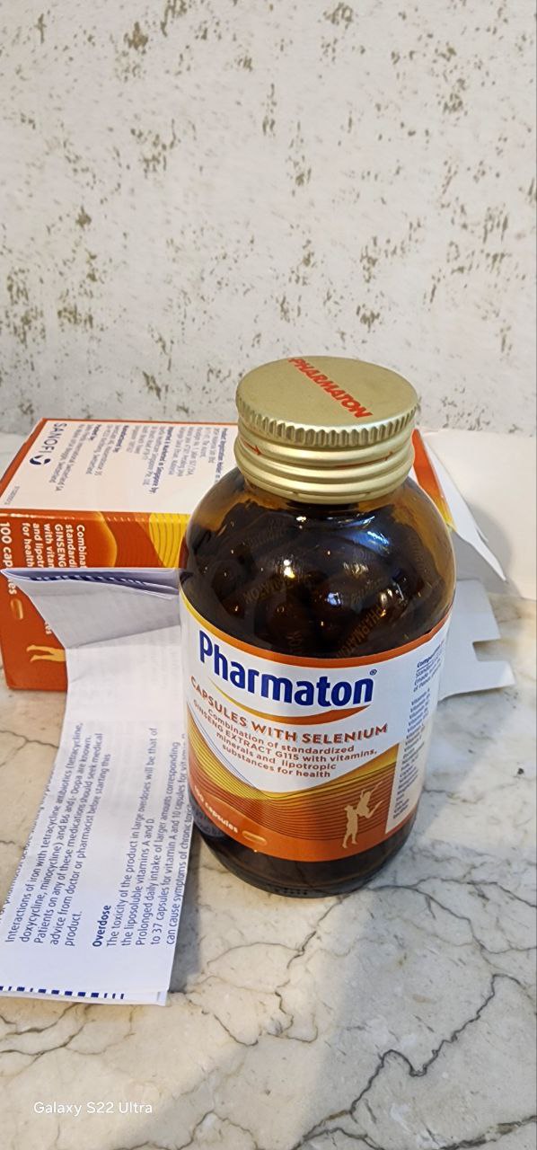 مکمل فارماتون همراه با سلنیوم یک مکمل غذایی حاوی عصاره جینسینگ G115، ویتامین ها، مواد معدنی و عناصر کمیاب است. سلنیوم یکی از موادی است که به عملکرد طبیعی سیستم ایمنی کمک می کند. گفته می شود که این کپسول ها به تسکین علائم خستگی، خستگی و خستگی روزانه کمک می کند.