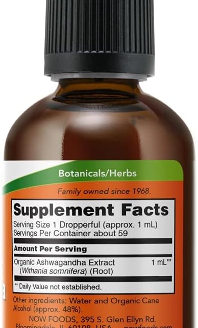 قطره عصاره آشواگاندا NOW Ashwagandha Extract Liquid Organic 500mg (59 میل)