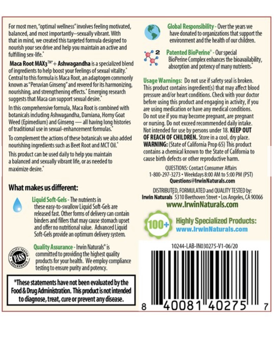 Irwin Naturals Maca Root and Ashwagandha