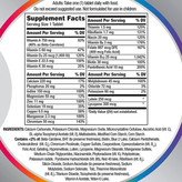 - Calcium Carbonate, Magnesium Oxide, Potassium Chloride, Ascorbic Acid (Vit. C), Dibasic Calcium Phosphate, Microcrystalline Cellulose, Maltodextrin, dl-Alpha Tocopheryl Acetate (Vit. E). Contains <2% of: Beta-Carotene, BHT (to preserve freshness), Biotin, Blue 2 Lake, Calcium Pantothenate, Cholecalciferol (Vit. D3), Chromium Picolinate, Copper Sulfate, Corn Starch, Crospovidone, Cyanocobalamin (Vit. B12), Ferrous Fumarate, Folic Acid, Gelatin, Hydrogenated Palm Oil, Hypromellose, Lecithin (Soy), Lutein, Magnesium Stearate, Manganese Sulfate, Medium-Chain Triglycerides, Modified Corn Starch, Niacinamide, Nickelous Sulfate, Phytonadione (Vit. K), Polydextrose, Polyethylene Glycol, Polyvinyl Alcohol, Potassium Iodide, Pyridoxine Hydrochloride (Vit. B6), Red 40 Lake, Riboflavin (Vit. B2), Silicon Dioxide, Sodium Ascorbate (to preserve freshness), Sodium Metavanadate, Sodium Molybdate, Sodium Selenate, Talc, Thiamine Mononitrate (Vit. B1), Titanium Dioxide, Tocopherols (to preserve freshness), Vitamin A Acetate, Zinc Oxide.