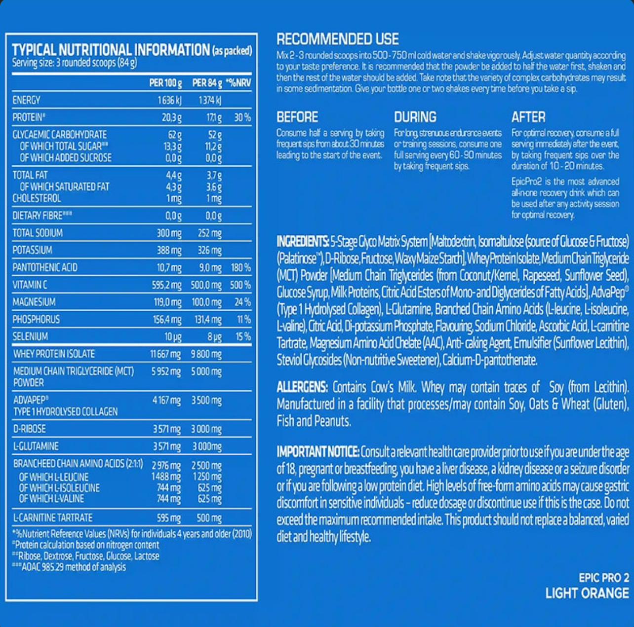 Epic Pro حاوی مواد ثبت اختراعی مانند PeptoPro® و Vitargo® است تا آن را منحصر به فرد قرار دهد.