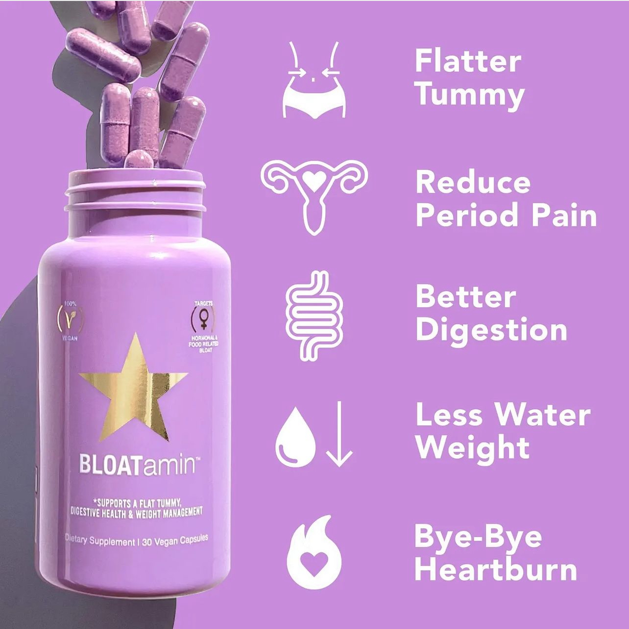 مکمل BLOATamin، 11 گیاه و آنزیم های تقویت کننده سیستم گوارشی را ترکیب میکند تا نفخ، گاز، درد معده و ناراحتیهای گوارشی را هدف قرار دهد، درواقع به مشکلات گوارشی مرتبط با هورمونها را درمان میکند.
