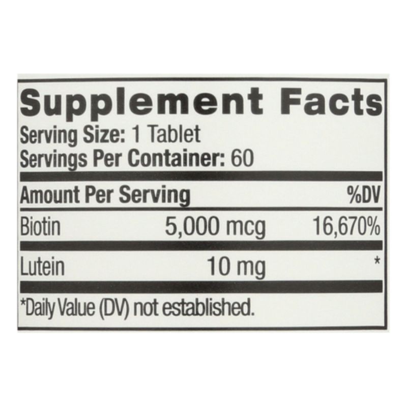 این مکمل حاوی بیوتین و لوتئین است که باعث هیدراته شدن پوست می شوند. بیوتن که به عنوان ویتامین B7 یا ویتامین H شناخته می شود غذا را به انرزی تبدیل می کند و فواید زیادی برای مو، پوست و ناخن شما دارد. افرادی که کمبود ویتامین دارند، مشکلاتی مانند ریزش و شکنندگی مو، ناخن های شکننده را تجربه می کنند می تواند از این محصول استفاده کنند.