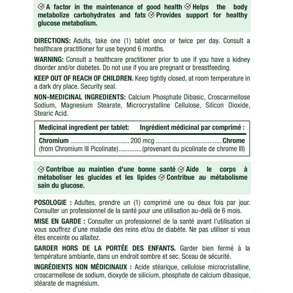 کرومیوم نیچرز بونتی 200 میکروگرم 100 عدد Nature’s Bounty Chromium 200 mcg یک جزء کلیدی از فاکتور تحمل گلوکز (GTF) است که به بدن شما در تنظیم قند خون کمک می کند. کروم همچنین در متابولیسم پروتئین و چربی نقش دارد.