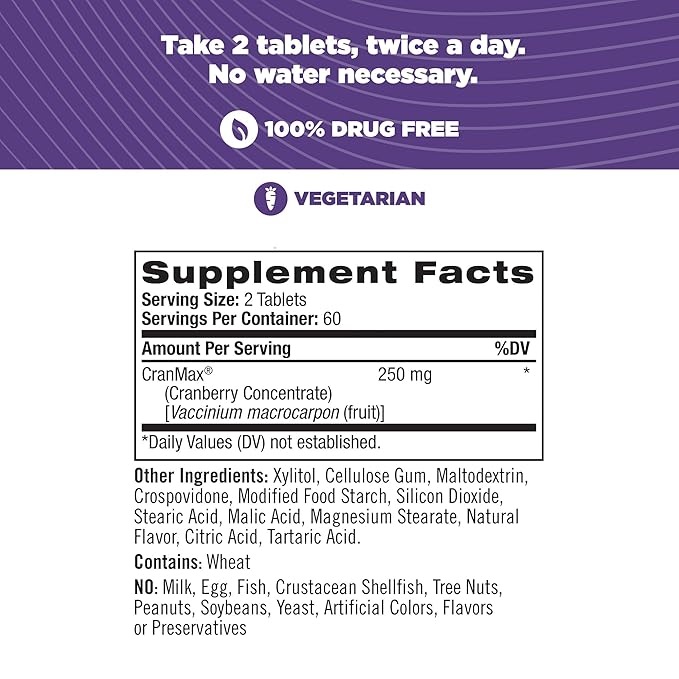 Natrol Cranberry Fast Dissolve با فرمول انحلال سریع ساخته شده است که به شما امکان میدهد قرصها را بهراحتی و بدون نیاز به آب مصرف کنید. این ویژگی موجب تسهیل مصرف و جذب سریعتر ماده فعال میشود.