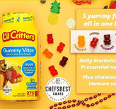مولتی ویتامین کودکان حاوی 11 ویتامین و مواد معدنی ضروری، ویتامین C و D برای حمایت از سیستم ایمنی، ویتامین A برای حمایت از چشم، و ویتامین E برای حمایت از آنتی اکسیدان (1)، همه در آدامسهای مولتی ویتامین کودکان با طعم میوه هستند.