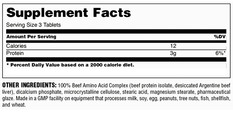 - 1 گرم پروتئین بیف خالص در هر قرص