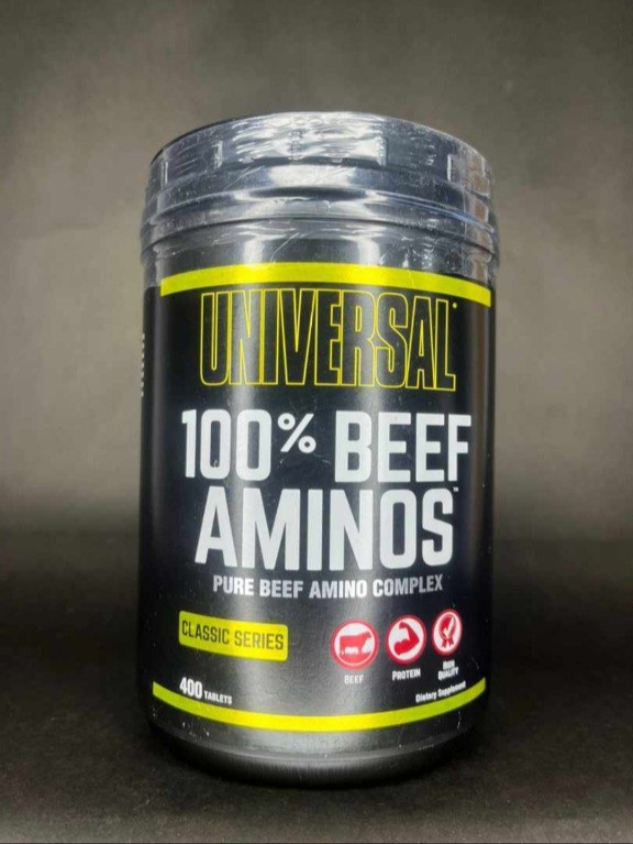 آمینو بیف یونیورسالuniversal Beef Aminos یک مکمل غذایی طبیعی با قدرت بالا و مشتق شده از با کیفیت ترین پروتئین ایزوله گوشت گاو و جگر گاو خشک شده خالص آرژانتینی است. این محصول مغذی حاوی طیف کاملی از اسید آمینه های مهم EAAوBCAAاست. فرمول این مکمل از پتانسیل واقعی آنابولین گوشت گاو استفاده می کند و برای هر کسی که به دنبال اضافه کرده عضلات بدون چربی است ایده آل است. آمینو بیف یونیورسال 100 درصد خالص ، یک محصول طبیعی و ساخت کشور آمریکا است که از پروتئین ایزولهی بیف با بالاترین کیفیت گرفته شده است. کمتر منبع پروتئینی است که قادر باشد مانند گوشت گاو، آمینواسید و پروتئین های موردنیاز را تامین کند و فرآیند عضله سازی را تسریع کند.