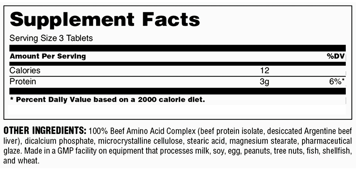 - 1 گرم پروتئین بیف خالص در هر قرص