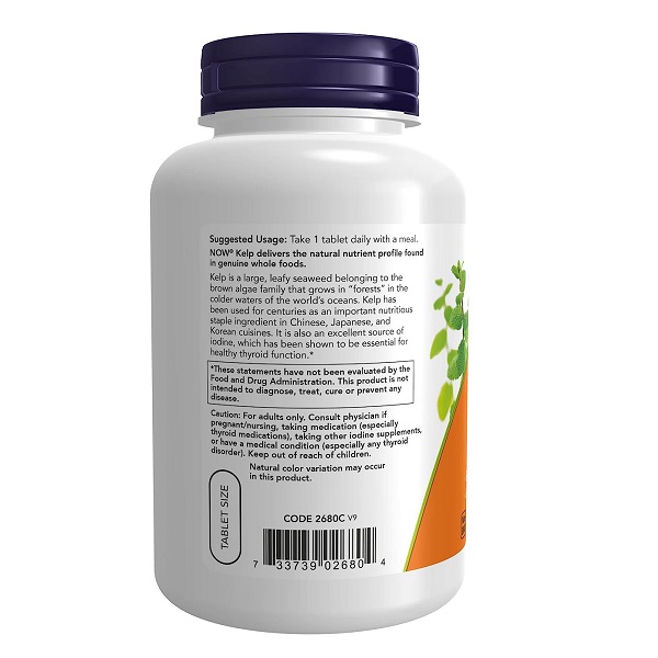 کلپ یک جلبک دریایی بزرگ و برگدار متعلق به خانواده جلبک های قهوه ای است که در “جنگل ها” در آب های سردتر اقیانوس های جهان رشد می کند. کلپ برای قرن ها به عنوان یک ماده اصلی مغذی مهم در غذاهای چینی، ژاپنی و کره ای استفاده می شود. همچنین منبع عالی ید است که نشان داده شده است برای عملکرد سالم تیروئید ضروری است. NOW Kelp پروفایل مواد مغذی طبیعی موجود در غذاهای کامل را ارائه می دهد. ممکن است تنوع رنگ طبیعی در این محصول ایجاد شود.