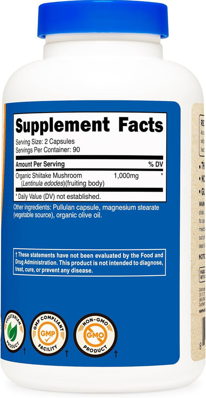 قارچ شیتاکه ارگانیک 1000 میلی گرم Nutricost Organic Shiitake Mushroom Capsules 1000mg, 90 Servings