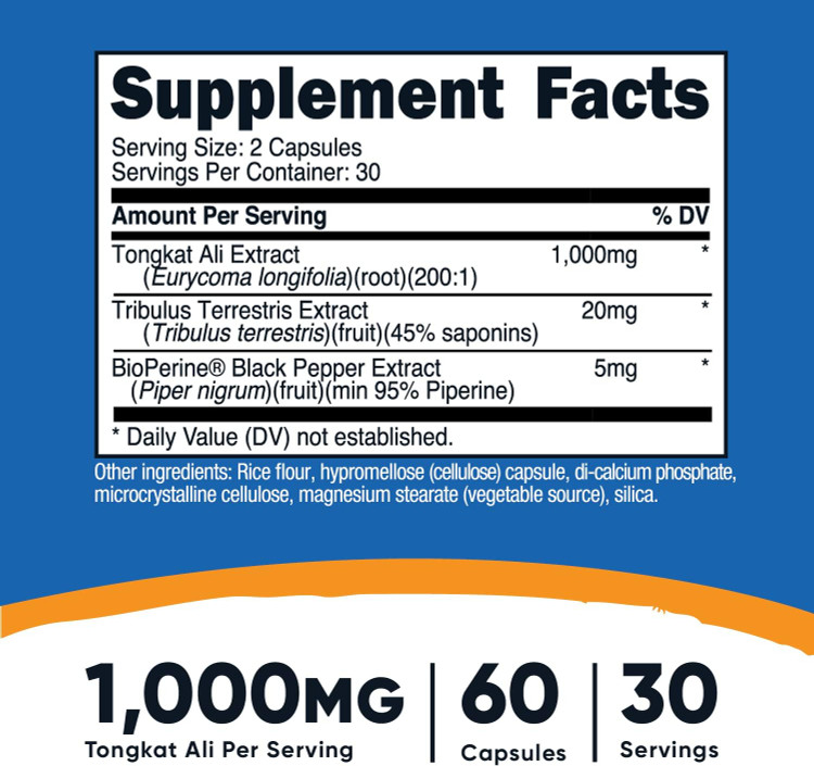 *Tongkat Ali Nutricost (تانگکت علی نوتریکاست) یک مکمل غذایی حاوی عصاره گیاه Eurycoma longifolia، معروف به Tongkat Ali یا "جینسینگ مالزیایی" است. این گیاه به دلیل خواص بالقوهاش در افزایش سطح تستوسترون، بهبود عملکرد جنسی، افزایش انرژی، و حمایت از سلامت عمومی بدن مورد استفاده قرار میگیرد.