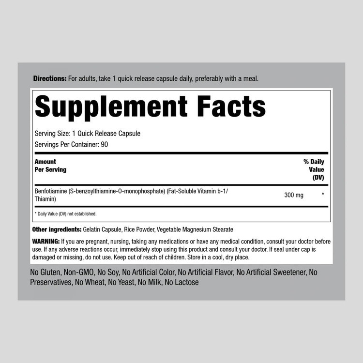 ویتامین B1 بنفوتامین پایپینگ راک 300 میلی گرم Piping Rock Benfotiamine 300mg | 90 Capsules | Fat Soluble Vitamin B1