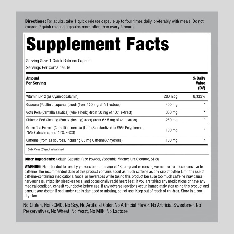 Piping Rock Ultra Energy Booster | 90 Capsules | with Caffeine