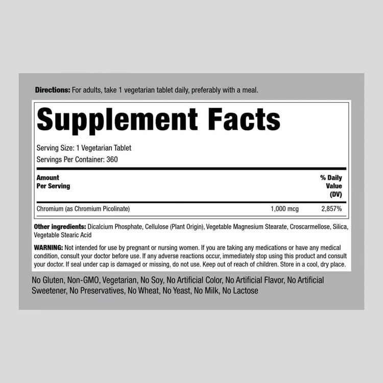 Piping Rock Chromium Picolinate 1000 mcg یک مکمل غذایی است که حاوی کرومیوم پیکولینات، یک فرم بسیار قابل جذب از عنصر کروم، میباشد. کروم یک ماده معدنی ضروری است که نقش کلیدی در متابولیسم قند و چربی ایفا میکند و به بهبود حساسیت به انسولین و تنظیم سطح قند خون کمک میکند.