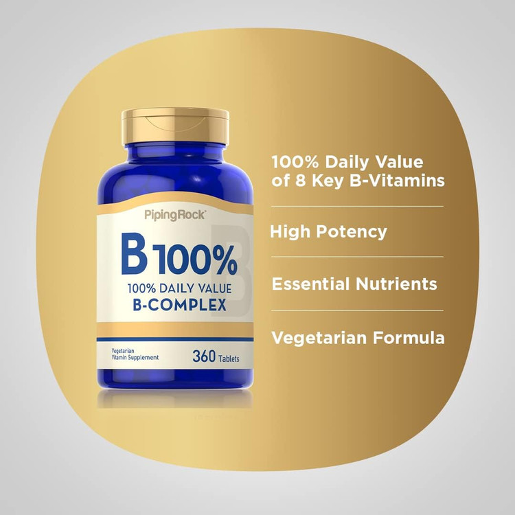 ویتامین ب 100 کمپلکس پایپینگ راک Vitamin B-100 Complex | 360 Tablet Capsules | Vegetarian Supplement